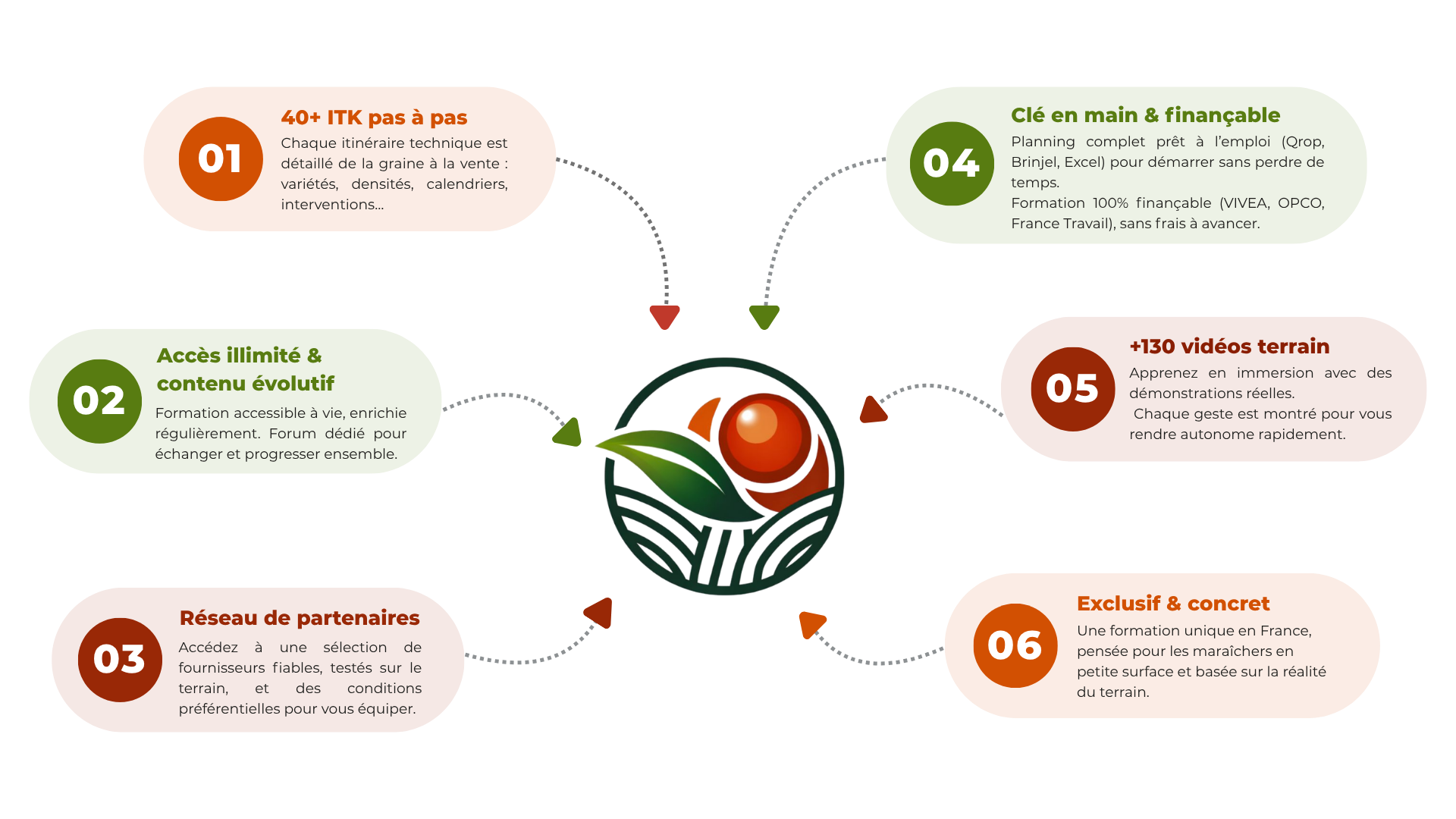 Une formation unique, pensée pour les maraîchers en petite surface, adaptée à notre réalité de terrain. À ce jour, aucune autre formation de ce type n'existe en France.
